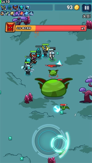采用移动中自动瞄准射击的设计,无需额外操作瞄准,只需通过虚拟摇杆控制走位即可持续攻击敌人,让玩家专注于割草的爽快体验,轻松应对海量外星生物。