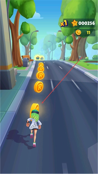4、拾取金币堆道具,获取大量金币,提升得分,推进跑酷进程。