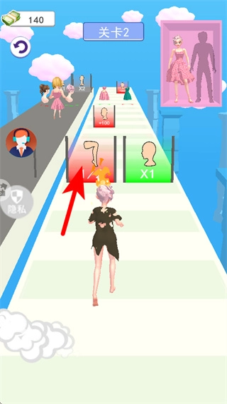 4、选择与右上角的身材服饰发型一样的选项,选择加分部件来提升装扮完成度,顺利进入下一关。