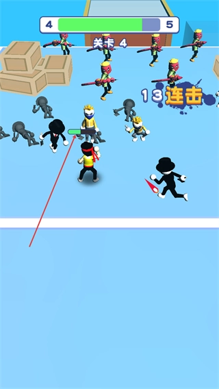 4、持续攻击剩下的敌人,保持13次连击,顺利通过关卡4的挑战。