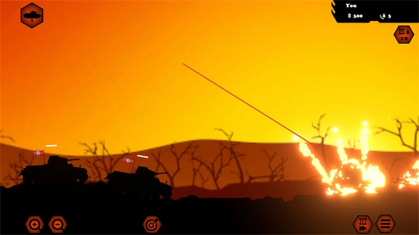 3、持续瞄准剩余敌方坦克射击,逐步清理战场威胁。