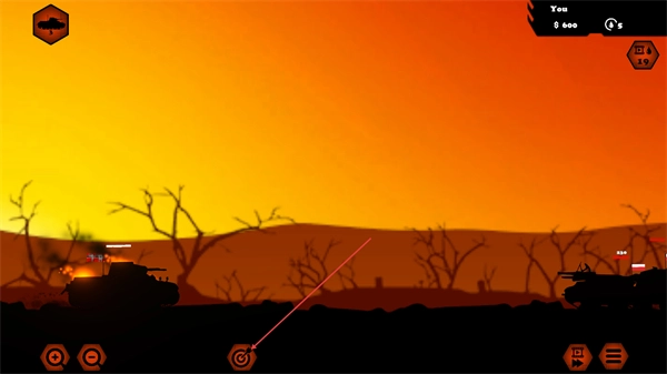 1、操控坦克在战场移动,瞄准敌方坦克,准备发起攻击推进战局。