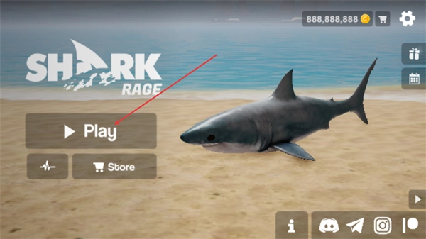 1、这是鲨鱼之怒的启动界面,点击Play按钮即可进入游戏,界面还包含商店等功能入口,该游戏以鲨鱼为核心角色,主打破坏类玩法。