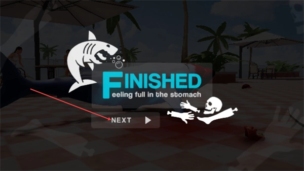 4、当关卡显示FINISHED提示时,说明当前任务已完成,点击NEXT按钮即可进入下一个关卡,继续进行鲨鱼的破坏类任务。