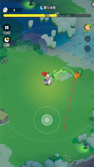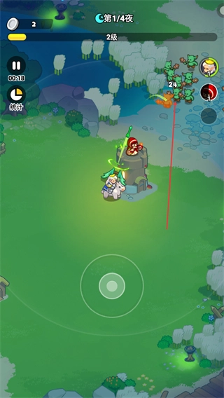 1、在第1/4夜操控角色攻击敌方单位,积累等级进度,推进关卡。
