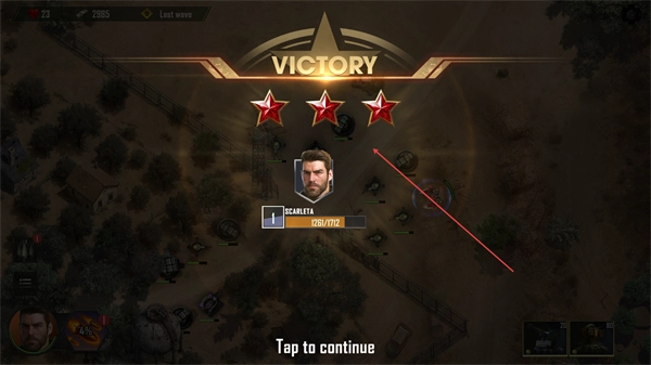 4、击败所有敌方单位获VICTORY三星评价,点击Taptocontinue进入后续流程。