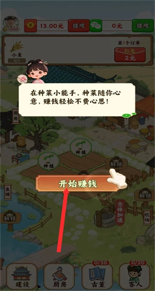 1、在农场主界面点击开始赚钱按钮,进入种植经营的核心玩法,开启农场的收益积累流程。
