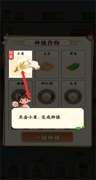 提供丰富的农作物品类供选择培养,不同作物有专属生长周期与培育要求,支持通过提升土地品质、使用专属肥料解锁高品质品种,提升订单收益。