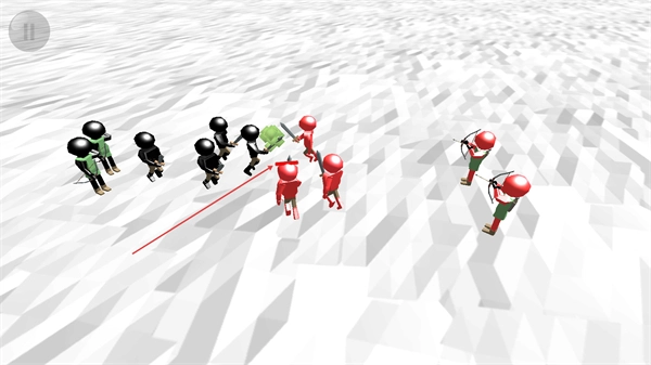 1、操控己方黑绿火柴人部队,向敌方红方部队含弓箭手移动,准备发起交战。