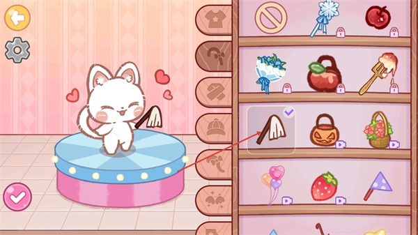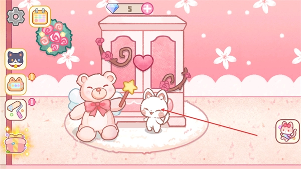 3、拖动场景内的小动物角色放置到柜子边上,可以触发角色的装备环节,后续可继续通过互动解锁更多角色与装饰。