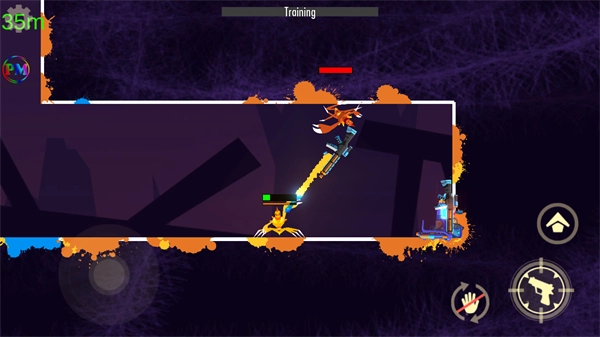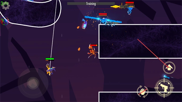 4、战斗过程中,点击右侧的跳跃按钮可触发角色的跳跃吐丝,助力在对战中占据优势,顺利完成训练关卡的挑战。