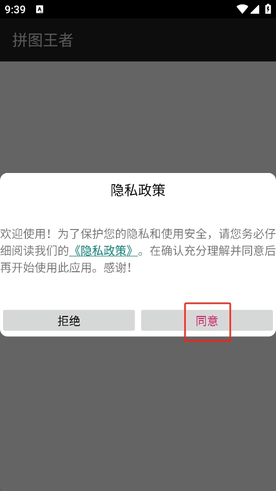 1、首先,打开游戏并同意隐私政策,点击“同意”按钮以继续。