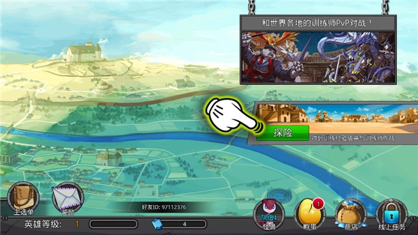 8、然后再返回首页,点击探险,这个玩法能够让训练师得到训练经验值也可以与训练师作战;