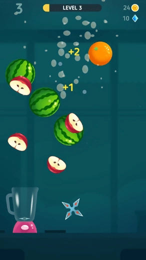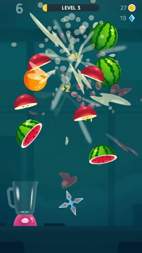 在游戏游玩过程中,在刀片之间进行操作与切换。用刀片斩切水果,还能运用闪光、冰与火焰的力量,后续每次更新都会添加更多刀片。