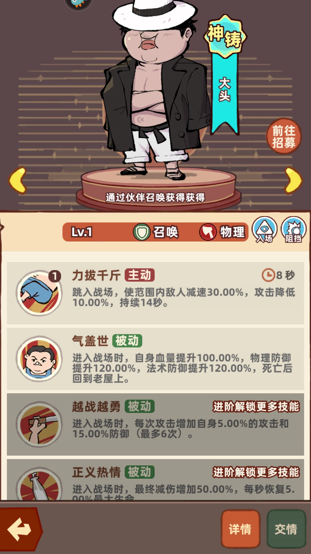 在战斗过程中,这位胖乎乎的伙伴会定期召唤两名僧侣协助作战,既能攻击敌人也能吸引火力;他的被动效果可提升自身防御能力,主动技能开启后则能持续为召唤出的僧侣恢复生命值。作为前期容易获取的召唤型伙伴,当队伍输出有限、敌人可能快速逼近终点时,选择让他上阵或许能带来不错的效果。