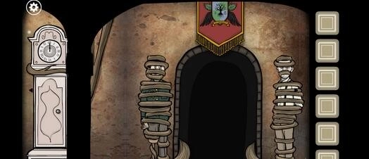 我们接着对房间里的闹铃进行设置,触碰闹铃后,闹铃突然出现故障,藏在里面的雕像随之掉落出来。