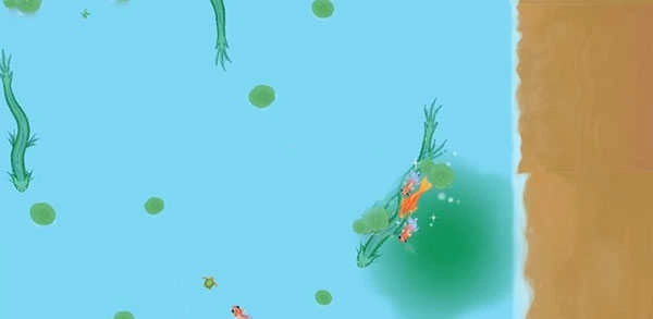 要是操作不太熟练的玩家,可以试着全程采用“苟住”的策略来度过从小蝌蚪到锦鲤的成长阶段,尽量避免四处游动,最好贴着沙滩区域前进就行,而且贴着沙滩移动还能获得减速效果。要是能使用大屏设备或者切换到横屏模式游玩,游戏难度甚至会直接降低一半。