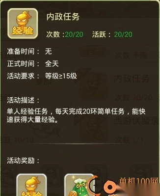 支持内政任务:这是单人经验任务,每天完成20环简单任务,就能快速获取大量经验。
