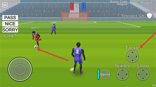 你可以通过左侧的虚拟摇杆来操控球员在球场上移动,从而调整方向,为参与足球比赛做好准备,以便和对手展开竞技。