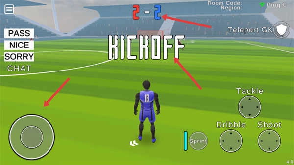 在比赛进行中,球员需全力争取进球得分。每当比分发生改变时,界面会弹出“Kickoff”提示,此时玩家需继续操控球员,开启比赛的下一阶段。