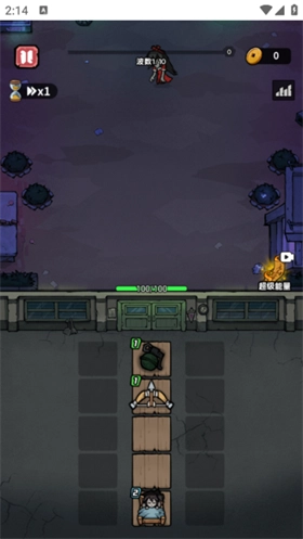 第二关的守卫是宿舍阿姨,要是房间里的道具没造完,她能遁地进到房间里。她还会回到地图中间回血,这时候可以趁机造炮塔攻击她。