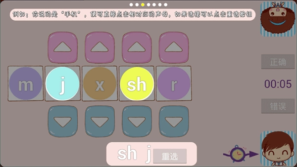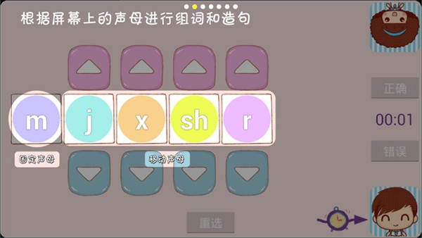 操作示例:若要组“手机”这个词,点击对应的声母按钮就行,要是选错了可以用“重选”功能。