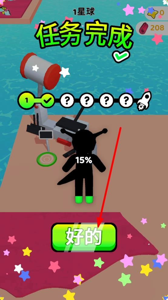 当阶段探索任务完成后,界面会弹出“任务完成”的提示。此时只需点击“好的”确认,即可领取丰厚奖励,解锁新的星球区域与高级工具,进而向更深层次的未知领域开启冒险。