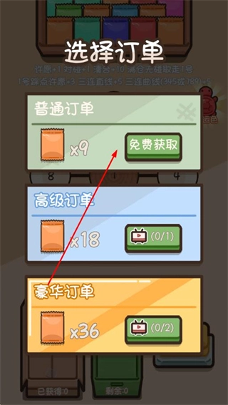 进入“选择订单”界面后,你可以挑选普通、高级或豪华类型的订单,从而开启消除挑战。