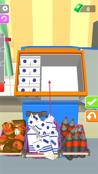 从下方的物品篮里挑选出对应的物品,通过向上或向下滑动来把物品摆放得整整齐齐。