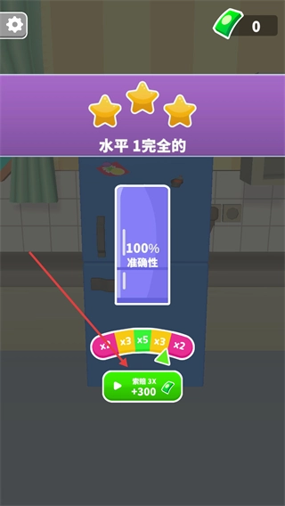 成功把冰箱装满后,能得到星级评价与金币奖励,点击索赔按钮还可以获取额外奖励。