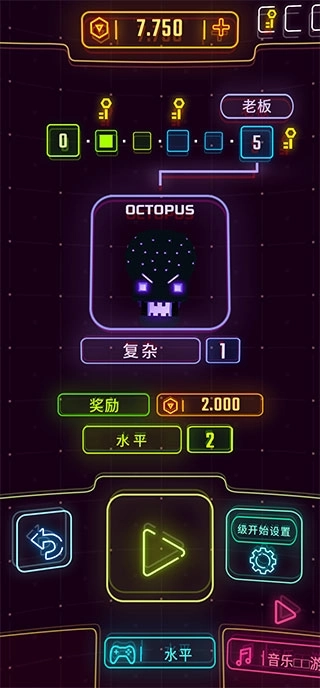 1、打开霓虹飞车游戏,游戏里设置了众多关卡等待你去挑战;