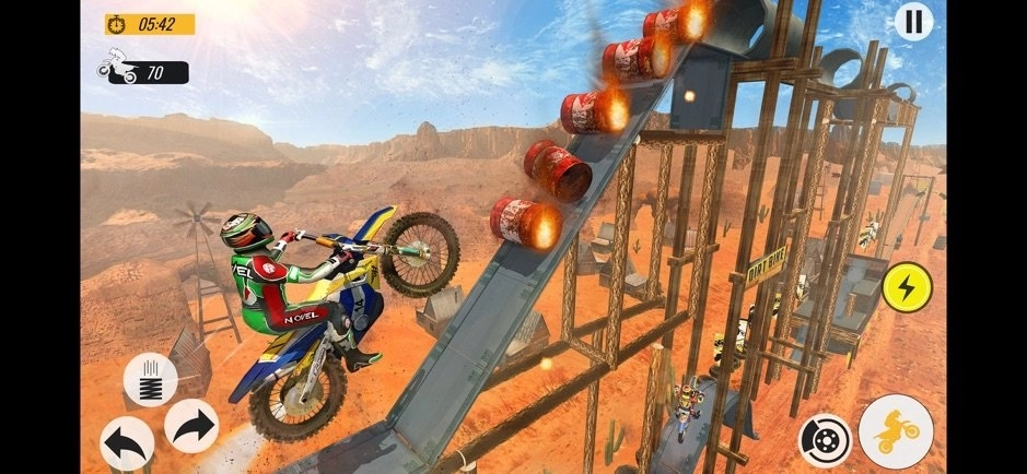 摩托车特技赛车是一款竞速类游戏。在这个游戏里,玩家能驾驶摩托车在开放世界开启全新冒险。完成挑战可获得奖励,用于改装现有摩托车或解锁新车型,每辆摩托车都具备独特性能。快来加入游戏,体验别具一格的摩托车挑战吧!一起参与这场刺激的竞速对决!