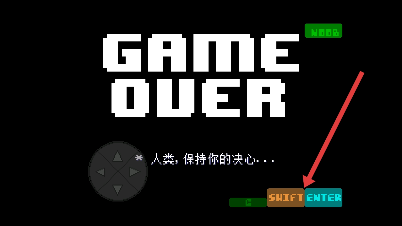 若战斗失利显示GAME OVER,按下下方的ENTER键,即可重新开启挑战,请带着决心继续这段冒险。