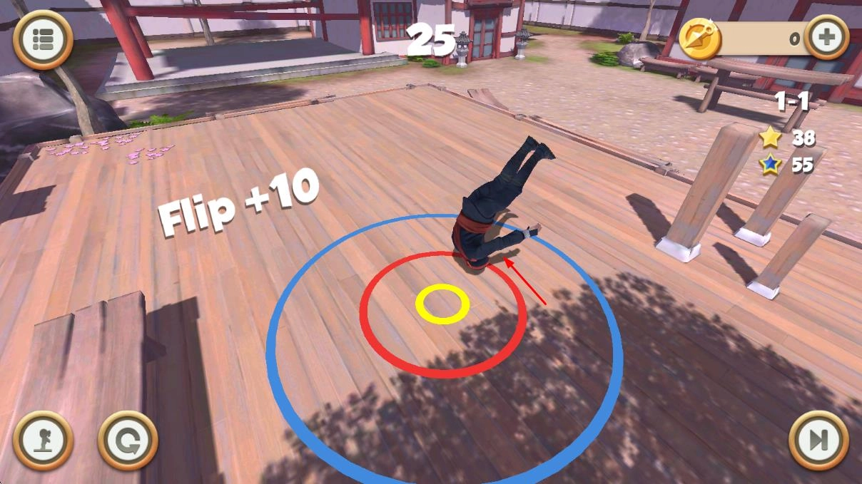 简单操作模式:点击屏幕即可控制忍者空翻的力度与时机,无需复杂的按键组合,新手也能快速上手,轻松体验闯关的乐趣。