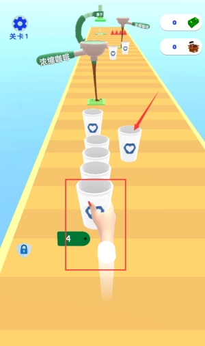 触碰红框杯子,完成第一关浓缩咖啡制作。