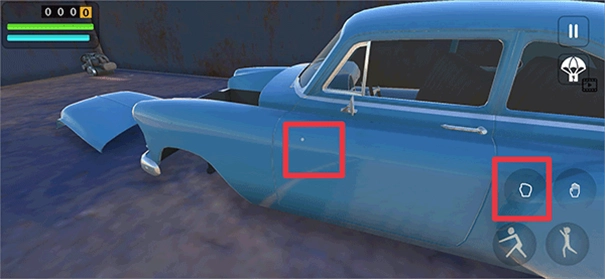 1、在游戏中玩家需要先将汽车上的所有零件装备在车上,点击手掌按钮拾取