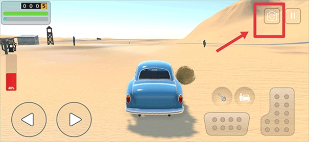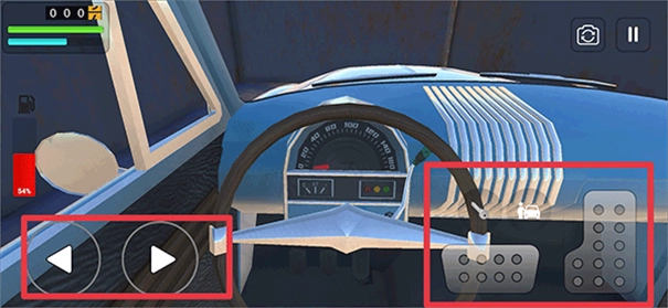 5、上车后就可以驾驶车辆行驶在道路上啦,左边按键控制方向,右边分别为倒车和前进