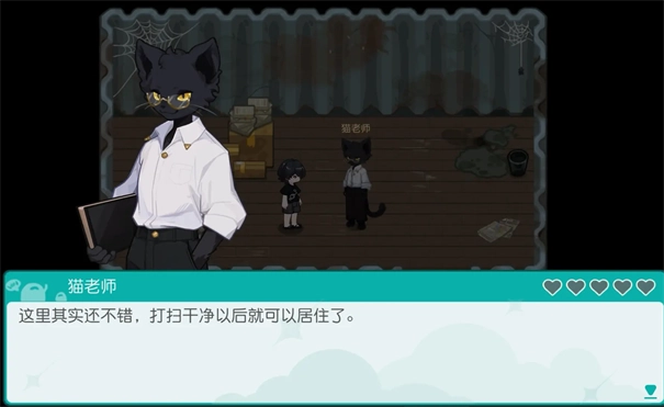 玩家可以砍树挖石头,带上鱼竿垂钓,享受悠闲的时光,和猫老师一起幸福生活。