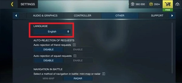1、各位小伙伴在安装完游戏之后,第1次进入游戏的时候,整个游戏的界面都是英文的,这个时候需要找到language这个选项;