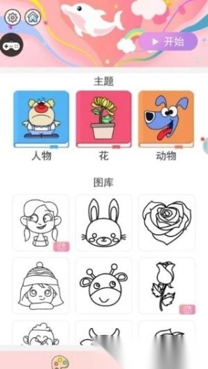 1.目前有三个主题可供选择:人物、花朵与小动物。你可以轻松地为它们涂色,让你的画册内容愈发丰富。