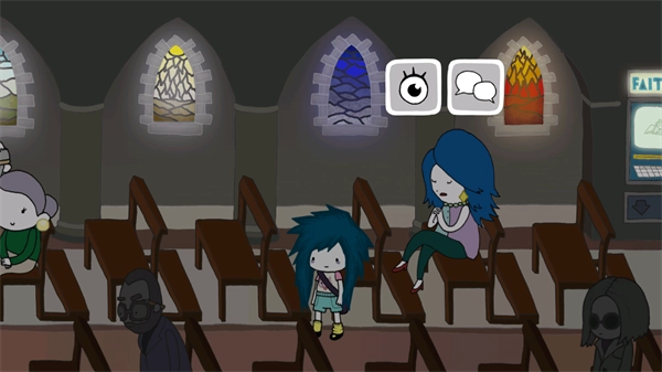 9、完成对话后,查看墓园里的物品,然后回到教堂与妈妈交谈,之后再返回肉店。