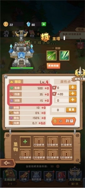 ①当前游戏里的塔仅能对生命、攻击、法强这三个属性进行加点操作,物理类型的塔优先加攻击属性,法术类型的塔优先加法强属性,游戏内会有红点提示推荐加点方向,至于其他属性则主要依靠圣物来获取。