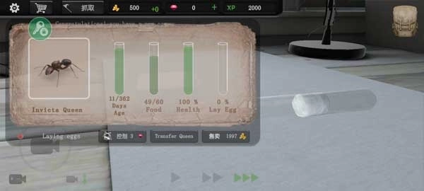 5、需要留意的是,若想拥有一支蚂蚁军队,至少得具备一位蚁后和一只工蚁。