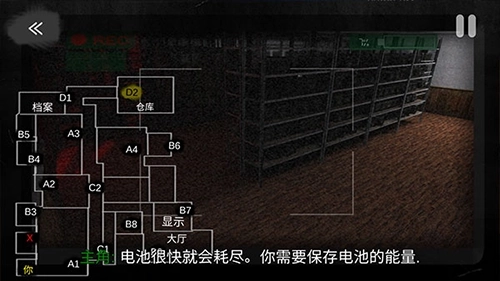 6、平板上会显示当前所处的地图位置,以及整个空间的路线,不过电量快要耗尽了,得赶紧找到可以充电的地方。