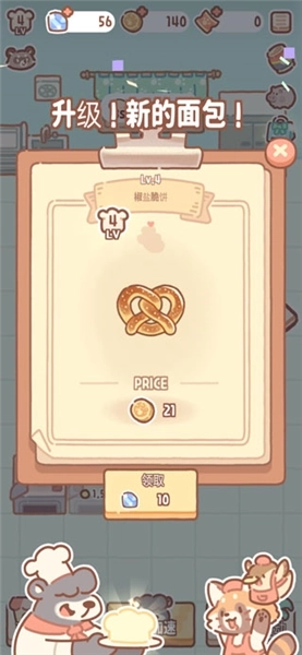 2、将好吃的面包上架销售,吸引不同的客人,完成更多订单,玩法丰富,每天都是不同任务。