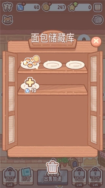 4、点击储藏柜可以看到制作好的面包,点击即可放置售卖