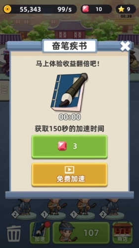 另外,“奋笔疾书”这一加速效果还会让你在150秒内的效益得到大幅度提升。