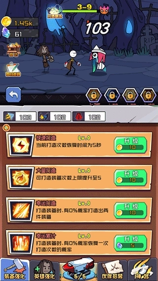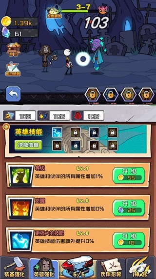 4、点击“英雄强化”功能,以此提升主角等级,并解锁全新技能。