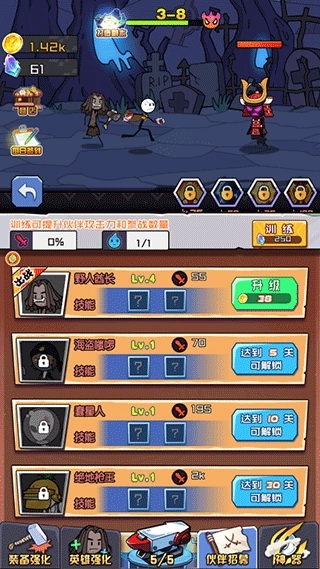 3、点击“伙伴招募”获取新伙伴,随后对其进行升级,通过强强联手的方式击败黑暗势力。