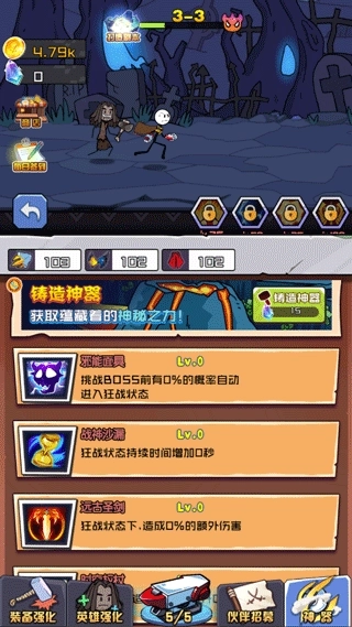 5、点击“神器”选项,消耗钻石打造更强力的神器,助力你轻松秒杀强大的boss。